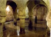 De la ocupación árabe se ha conservado bastante más. Torres defensivas, fragmen-tos de la muralla y, como joya de la corona, el aljibe que se encuentra bajo el palacio de las Veletas, hoy museo de Cáceres. En la ciudad hay muchos de estos depósitos de agua, esenciales en una colonia por la que no pasa ningún río, aunque posea un buen entramado de corrientes subterráneas. Pero este aljibe almohade del siglo XII se lleva la palma por ser único en toda Europa y úni-camente superado por el aljibe bizantino de Estambul. Excavado en parte en la roca natural, ha recogido durante más de ocho siglos el agua de la lluvia. Dieciséis arcos de herradura sobre una docena de colum-nas, alguna de época romana, forman las cinco bóvedas que cubren un espacio de diez metros por quince.