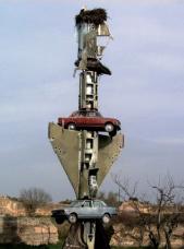 Sobre estas peñas propias de ciudad encantada tienen sus nidos docenas y docenas de cigüeñas que también se han erigido en dueñas del lugar. Un paisaje que entusiasmó al artista alemán Wolf Vostell, quien decidió abrir aquí su museo. El que fuera iniciador del movimiento Flexus y padre del happening en Europa dejó en Los Barruecos sus impactantes esculturas conceptuales en las que los automóviles se transforman en obra de arte, en elemento de reflexión. Si la naturaleza impresiona, en no menor medida lo hace la obra de 16 metros de altura creada con el fuselaje de un avión ruso, dos coches, tres pianos y unos cuantos monitores de ordenador. Su título tampoco tiene desperdicio: ¿Por qué el proceso entre Pilatos y Jesús duró sólo dos minutos? ¡Cómo no!, con un nido de cigüeña en lo alto.