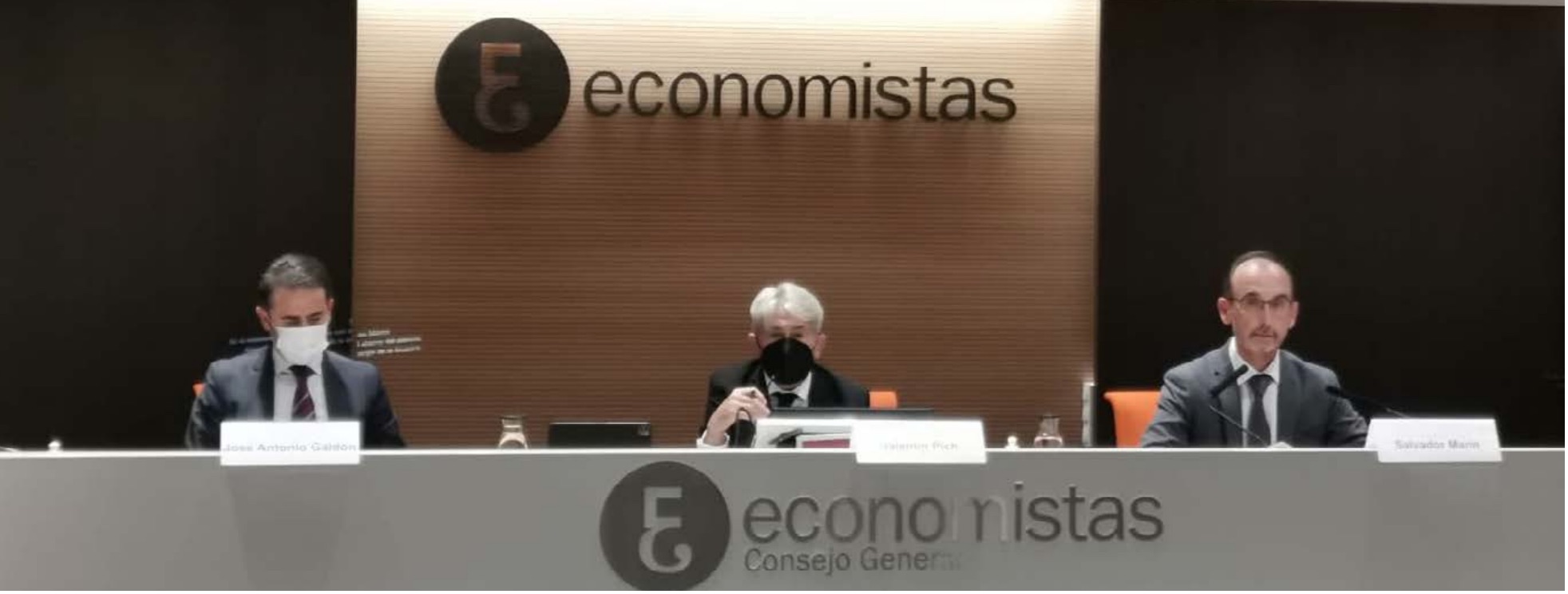 En la presentación, participaron Valentín Pich, presidente del Consejo General de Economistas de España (CGE); José Antonio Galdón, presidente del Consejo General de la Ingeniería Técnica Industrial de España (COGITI); Salvador Marín, presidente EFAA for SMEs, director Cátedra EC-CGE y coordinador del Informe; Domingo García, catedrático UPTC y miembro del Equipo de Investigación del Informe, y José Manuel Santos, miembro también de dicho equipo.