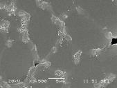 No se observan cambios apreciables entre las dos muestras. Hay que tener en cuenta, además, que entre el centro y el extremo la morfología cambia; el grano es más fino en los extremos. Este aspecto junto con el hecho de que la precipitación de la fase intermetálica es pequeña (reducido aumento de entalpía), hace que no se pueda apreciar con nitidez el engrosamiento del eutéctico en el borde de grano con la simple observación de las muestras. Dichos ensayos se han realizado con un microscopio electrónico modelo JSM-5400 en la Universidad de Burgos.