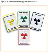 La señalización de riesgo de irradiación vendrá definida mediante su símbolo internacional: un trébol enmarcado por una orla rectangular del mismo color y de idéntica anchura que el diámetro del círculo interior del mismo (figura 5).
