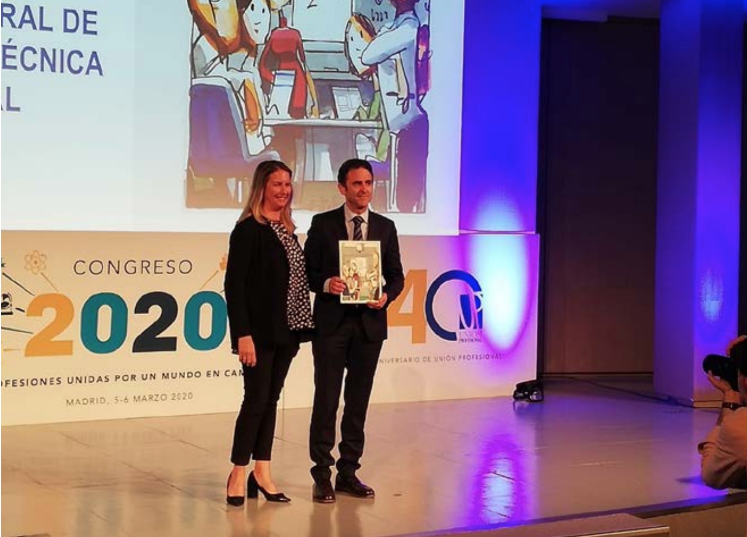 El Consejo General de la Ingeniería Técnica Industrial de España (COGITI) ha sido reconocido en la categoría de Formación, “por el espíritu de actualización continua de los conocimientos necesarios que se ofrecen a los profesionales”; en especial, por el sistema de Acreditación DPC (Desarrollo Profesional Continuo) Ingenieros (www.acreditacioncogitidpc.es), implantado en 2012, y que a su vez ha obtenido el Sello UP de Homologación del Desarrollo Profesional Continuo (DPC). Se trata de un marco común de los colegios profesionales diseñado por Unión Profesional con el objetivo de ofrecer una garantía de calidad. José Antonio Galdón Ruiz, presidente del COGITI, recogió dicho reconocimiento de manos de una responsable de la empresa Wolters Kluwer.