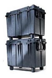 Al ser a la vez un contenedor de transportes es perfecto para transportar y proteger material sensible (como equipos para ferias comerciales, pantallas planas, discos duros, servidores, compresores de aire, herramientas eléctricas, equipos para emergencias médicas o equipos industriales de repuesto). Gracias a su robusto diseño, es totalmente apilable y la torre de dos contenedores puede manipularse como uno solo. Este contenedor incluye un kit de elevadores desmontables –como accesorio opcional–, que facilitan el acceso de las horquillas de la carretilla elevadora y permiten su levantamiento y manejo sin necesidad de usar un palé. Cuenta con estructuras con núcleo de célula abierta y paredes sólidas para mayor dura bilidad, sellos estancos para la protección frente a polvo y líquidos, y válvulas automáticas para la compensación de presiones en los envíos aéreos o a grandes alturas. Estas características lo hacen más resistente a los cambios meteorológicos que otros contenedores (que pueden dejar entrar agua y arena por las juntas).