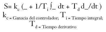 En este artículo se considera que el módulo o el algoritmo de control (el Controlador) responden a la función PID (Proporcional, Integral, Derivativo).