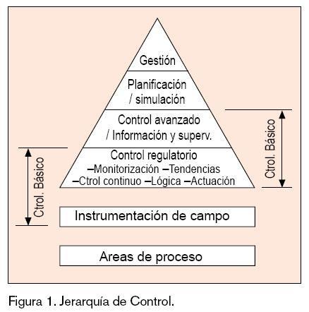 Dentro de la conocida pirámide de jerarquías de control, figura 1, una buena filosofía a tener en cuenta es que los niveles inferiores han de ofrecer unas prestaciones lo suficientemente fiables para que la información que envían a los niveles superiores sea lo más precisa posible, con el fin de que los datos elaborados en éstos ofrezcan unos resultados adecuados. No se deben establecer estrategias complicadas de control cuando todavía no se han superado problemas de fiabilidad en los niveles inferiores.