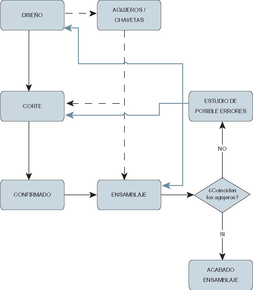 Para lograr los preceptos de calidad total, el proceso de fabricación se inicia en el diseño de las piezas que componen el conjunto y desde esta primera etapa de la cadena productiva se fijarán los estándares de calidad que cumplir en todas las etapas de la producción. Las fases del proceso productivo en nuestra empresa se reflejan en el diagrama de flujo de la figura 1.
