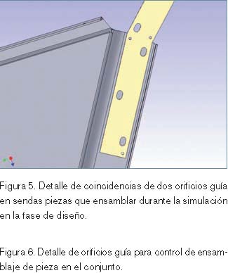 Es decir, la simulación del ensamblaje en la etapa de diseño hace que una vez fabricada la pieza sólo pueda ser montada con la que le corresponde. Dicha concordancia es verificada con la coincidencia de los orificios o guías simulados en la concepción de la pieza.