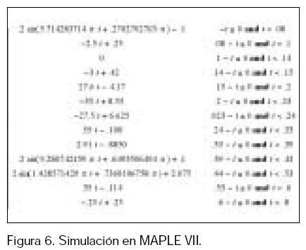 Este proyecto muestra como, a partir del desarrollo de Fourier, los armónicos correspondientes a un electrocardiograma de un corazón sano (figura 5) y de un corazón enfermo son distintos. En la exposición realizada por los alumnos se mostraron electrocardiogramas reales de diversos pacientes, comparando las gráficas de personas de diversas edades y de varias patologías. Para ello los estudiantes utilizaron simulaciones de las gráficas realizadas con MAPLE VII (figura 6).