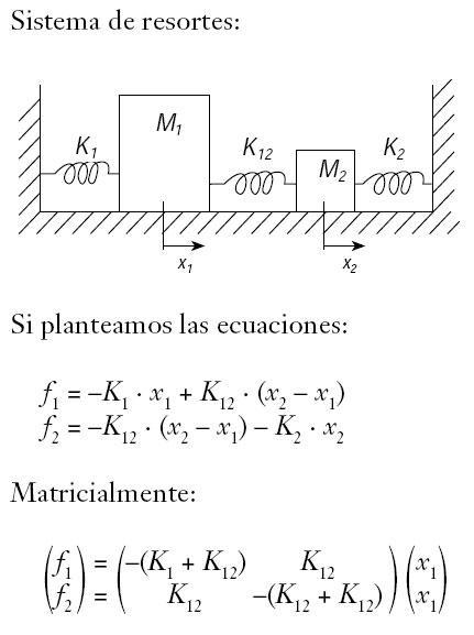 Se intenta modelizar la ley de Hooke como un sistema lineal, partiendo inicialmente de una masa y un resorte. El objetivo final consiste en encontrar un modelo que relacione la fuerza y el desplazamiento con diversos resortes y masas. De esta forma se consigue establecer modelos de álgebra matricial (figura 2).