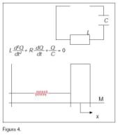 A partir del artículo, los alumnos notan que las condiciones de gravedad son distintas en la tierra y en el espacio, y a partir de las leyes físicas involucradas construyen la ecuación diferencial asociada al movimiento. La práctica termina introduciendo la ecuación diferencial de segundo orden con coeficientes constantes. Cuando conectamos en serie con una resistencia R y una bobina de coeficiente de autoinducción L, la ecuación que describe la carga que es almacenada en las placas de un condensador de capacidad C, es la que muestra la figura 4.