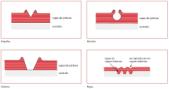 – Células de Bernald: muy poco frecuente en aplicaciones normales, da un aspecto de panal de abejas. Es debido a separación de pigmentos por problemas de tensión superficial y un elevado espesor de pintura muy líquida.