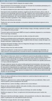 La última actividad de esta etapa consiste en redactar un procedimiento provisional del cambio de útiles considerando que se han realizado las mejoras propuestas en las fases anteriores. Mentalmente se sigue la secuencia de operaciones de cambio numerando las distintas operaciones y teniendo en cuenta las necesidades de materiales y la disposición de medios para conseguir su óptima ejecución.