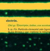 Electrón, del griego ‘?’ ?e?t???, élektron, y su posterior variante latina electrum, significa ámbar. También da nombre a una moneda de la antigua Grecia. Plinio el Viejo comenta que el electro es una mezcla de cuatro partes de oro y una de plata, de lo que resulta el color dorado como el ámbar. La primera documentación en castellano, según el Diccionario crítico etimológico castellano e hispánico de J. Corominas y J. A. Pascual, tiene fecha de 1555 en un texto de Andrés de Laguna. Se trata de una traducción, con interesantes comentarios y adiciones que doblan el texto original, de la Materia médica de Dioscórides: “Y en lugar de lágrimas lloraban de allí adelante perpetuamente el electro, que en castellano llamamos ámbar”. (Libro I, cap. 90).