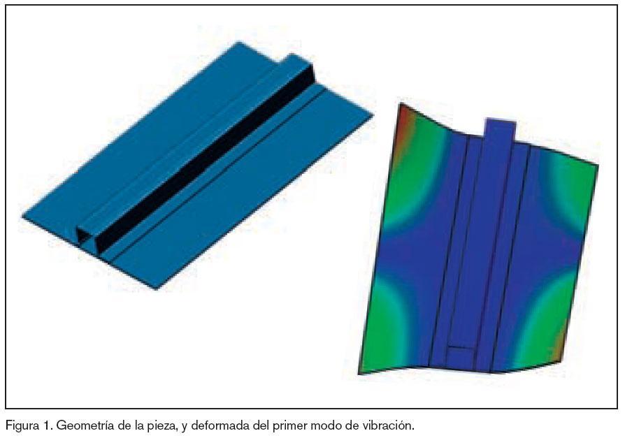 El realizar un análisis previo de la estructura por elementos finitos, nos permite estimar las frecuencias propias, así como las formas modales. Estos resultados permiten ajustar el rango de frecuencias a emplear en el analizador, así como los mejores puntos para excitar la estructura.
