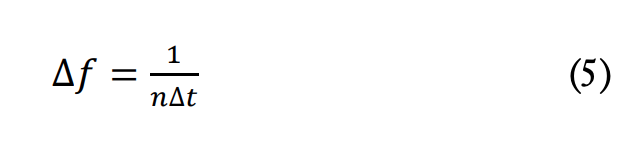 siendo n el número de muestras tomadas (o nDt el tiempo total de registro). En nuestro caso se han tomado 4.096 muestras, para un tiempo de registro de 0,0143 s, lo que conduce a una resolución en frecuencia de 69,8 Hz.