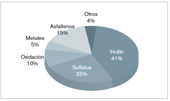 – Hollín: proveniente del combustible y del lubricante tras la combustión.