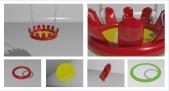 El gimnasio (figura 9) zoo está compuesto por siete piezas tridimensionales: cinco triángulos, un cuadrado y un rombo. Está basado en el juguete tradicional denominado tangram. La variación respecto a este es que en nuestro caso se trata de colchonetas de mediana altura y la unión entre los módulos se realiza mediante imanes para que esta sea consistente. Todas ellas están fabricadas en PEBD y rellenas con PS expandido.
