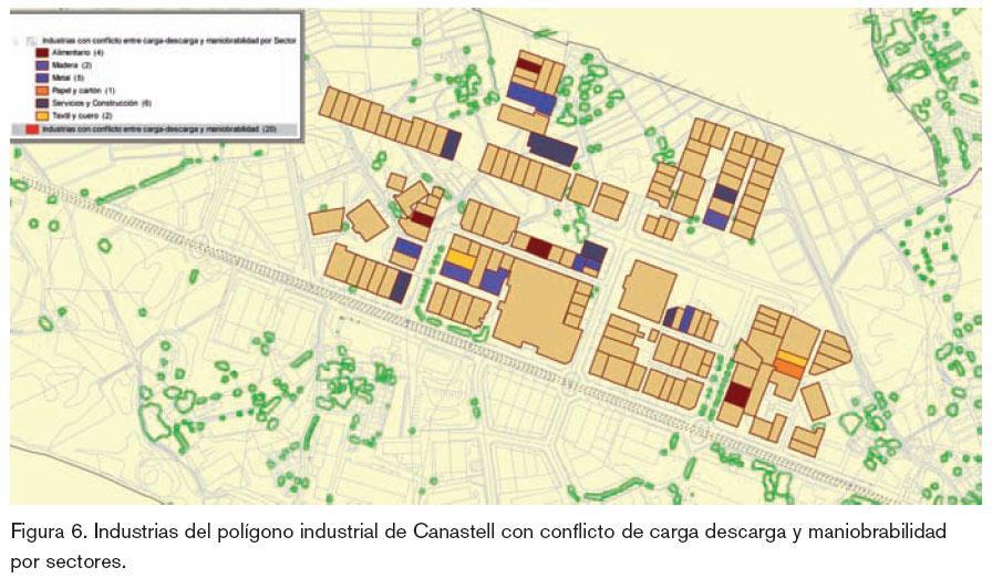 - El análisis realizado para el polígono industrial de Canastell pone de manifiesto que los sectores de servicios, construcción y metal son los que presentan mayores problemas en las tareas de carga y descarga. Estos sectores son los más consolidados en el polígono, por lo que se tendría que tener en cuenta para futuras ampliaciones del área industrial, proyectando vías con mayor anchura de forma que este tipo de industrias realizaran de manera óptima su actividad empresarial o industrial. Se trata, por tanto, de un factor selectivo y decisivo para estos sectores industriales.