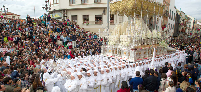 Trono o paso. Lugar donde se coloca la imagen del Cristo, de la Virgen u otra que sale en procesión. Es de orfebrería, madera o de ambos materiales.