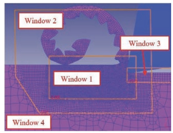 Figure 1. Windows that define the adaptive workpiece mesh.