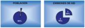 Sobre este principio se apoyan todas las Convenciones Marco de las Naciones Unidas sobre el Cambio Climático. Las naciones industrializadas (color azul), con un quinto de la población mundial, arrojan a la atmósfera dos tercios de los gases vinculados con el aumento de la temperatura de la Tierra.