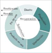 En la definición anterior se indica el necesario enfoque global del ciclo de vida, lo que significa que el diseñador amplía su perspectiva ambiental de diseño más allá de las fases de producción y uso. De acuerdo con la norma UNE-ISO 14050:2005, se define ciclo de vida como “las etapas consecutivas e interrelacionadas de un sistema producto, desde la adquisición de materia prima o de su generación a partir de recursos naturales, hasta la disposición final”. Estas etapas consecutivas siguen el orden lógico que se puede observar en la figura 1, adaptación de la presentada por Rebitzer et al (2000).