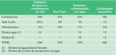 Así pues, la primera de las ventajas de esta técnica es el ahorro energético, en la medida en que, en las instalaciones de climatización y refrigeración, la eficiencia energética y el consumo de energía eléctrica están directamente relacionados con la temperatura de condensación del refrigerante utilizado. En una instalación de aire acondicionado típica (tabla 1), la comparación de los consumos energéticos arroja cifras ilustrativas: los equipos de condensación, incluidas torres de refrigeración y condensadores evaporativos, ofrecerían frente a los de condensación por aire un ahorro en el con-sumo de hasta el 45%. Otro ejemplo en la misma línea sería el que se produce en las instalaciones frigoríficas, donde las potencias absorbidas por las torres y condensadores evaporativos frente a las de aire son sensiblemente inferiores.
