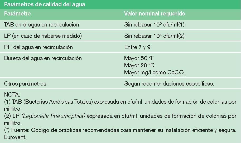Las torres de enfriamiento y condensadores evaporativos sólo son susceptibles de desarrollar la bacteria Legionella Pneumophila, es decir, de aumentar la concentración de la misma en el agua que recircula, si el líquido que recibe de la red está contaminado y el equipo no se controla y mantiene de forma adecuada, tal y como exige la ley en el R.D. 865/2003 de 4 de julio por el que se establecen los criterios higiénico-sanitarios para la prevención de la legionelosis.