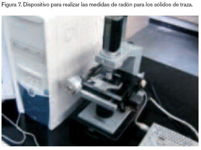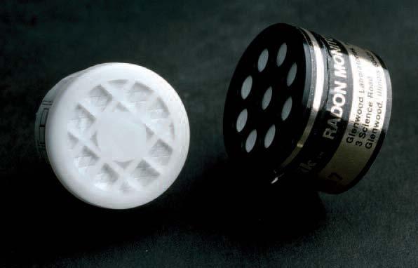 2. Detectores sólidos de trazas: Son sistemas pasivos y consisten en la utilización de materiales con nitrato de celulosa o policarbonato que tienen como propiedad realizar impresiones en el material debidas a las radiaciones emitidas por el radón y sus descendientes tras un tiempo de exposición.