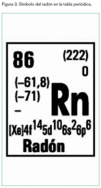 Las características básicas (figura 3) del radón 222 (222Rn) son: