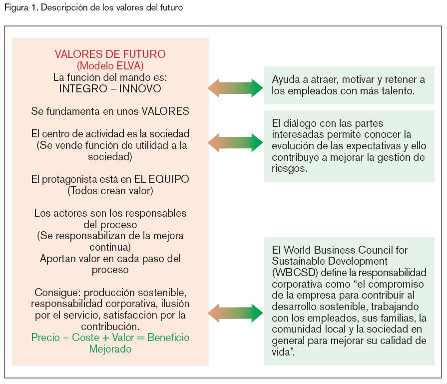 Con un equipo donde estos valores afloren y estén asimilados, es fácil que las organizaciones puedan compatibilizar competitividad y producción responsable, minimizando riesgos medioambientales, creando beneficios a la sociedad, y aumentando la transparencia con las partes interesadas (accionistas, autoridades públicas, clientes, etc.). Estos valores están orientados a transformar el concepto de crecimiento económico y beneficio, por la generación de valor (monetario y no monetario) a todos los grupos de interés a medio y largo plazo. Esta generación de valor es lo que hará a la empresa permanecer en el mercado dentro de unos años mientras sus competidores se quedarán en el camino.