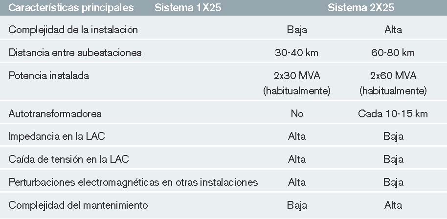 Ventajas e inconvenientes de los sistemas 1×25 kV y 2×25 kV