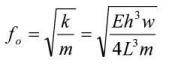 donde k es la constante elástica mecánica, m es la masa, E es el módulo de Young, h, w y L son la altura, anchura y longitud de la viga respectivamente. Así, una masa grande es deseable que sea,a la vez, larga y estrecha. Lo siguiente es el amortiguamiento mecánico del dispositivo por su gran influencia en la potencia de salida de éste. La constante de amortiguamiento viscoso para un amortiguamiento de película comprimida con aceite entre ambas placas (squeeze-film) de una placa puede ser aproximadamente