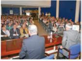 La intervención, ya por la tarde, del presidente del Cogiti cont? con una masiva y expectante asistencia. Vicente Martínez García desarrolló su conferencia en torno a dos interesantes temas: La transposición de la Directiva de Servicios e influencia de los colegios profesionales de Ingeniería y El acceso de los ingenieros técnicos industriales a los nuevos títulos de grado.