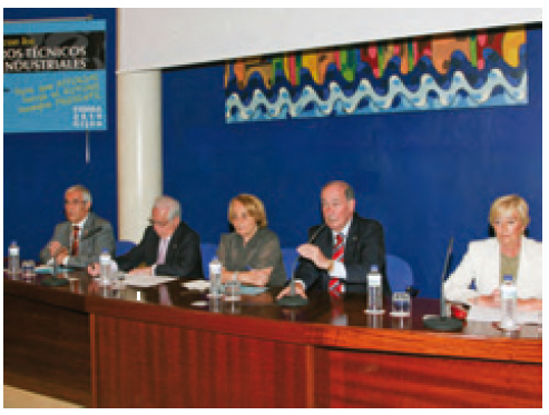 Lugar destacado ocupó la reunión de trabajo de la Ingeniería Técnica Industrial celebrada el día 14 en el recinto ferial. Fue coordinada por el presidente del Consejo General, Vicente Martínez García, a quien acompañó el anfitrión, Enrique Pérez Rodríguez. Se reunieron en sesión de trabajo todos los decanos y representantes de los colegios.