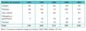 En las tablas 1 y 2 quedan recogidos los consumos de energías no renovables en diferentes regiones del planeta a lo largo de tres décadas en las que el espectacular desarrollo de la industria originó incrementos muy significativos en el consumo de energía. Especialmente destacables son los casos del petróleo, del gas natural y del uranio.