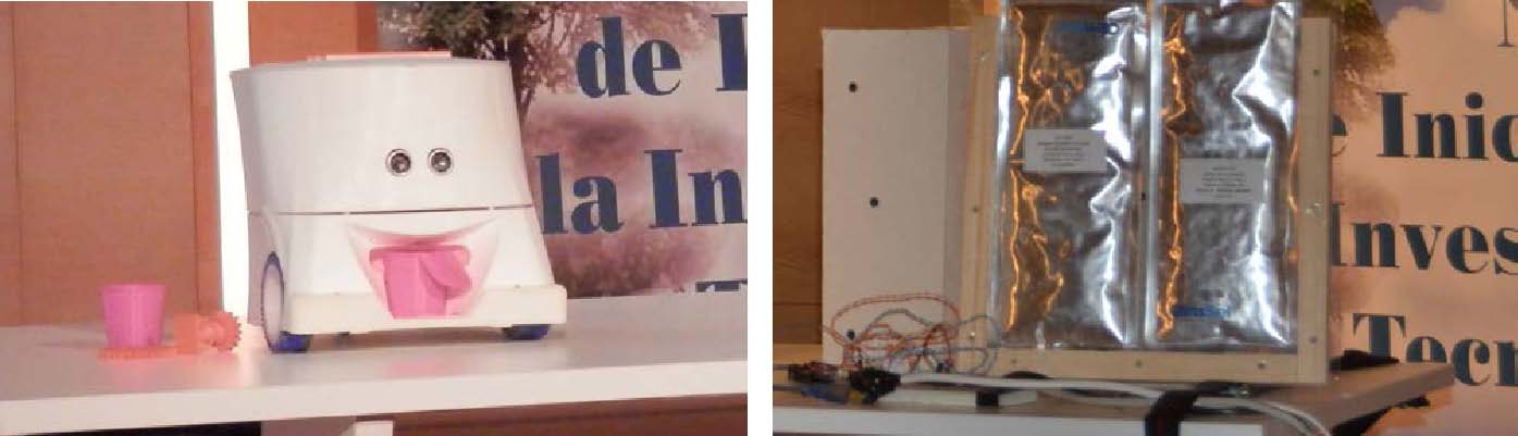 En esta edición se decidió otorgar, además, un accésit en la categoría de bachillerato, por el alto nivel del proyecto, desarrollado por el I.E.S. Benlliure de Valencia, denominado Jampi-Bot (www. premionacionaluaitie.com/2018-proyecto-6). Se trata de un robot dispensador de medicamentos en forma de grageas. Su nombre proviene de la palabra jampi, medicina o medicamento en quechua, y bot terminación de robot. El proyecto pretende fomentar la autonomía en personas en situación de dependencia o con capacidades reducidas (personas mayores con pérdidas de memoria y personas con problemas de movilidad). También está indicado para motivar a los niños/as a tomar la medicación de forma entretenida. Tras muchas pruebas, el dispensador se diseñó en forma de cilindro dividido en 10 partes, donde se colocan distintos depósitos en forma de quesitos de diferentes colores, con rampas y con distintas salidas, según la forma de la pastilla. La UAITIE entregó 4.000 euros en premios, repartidos entre los impulsores del proyecto y los centros educativos.