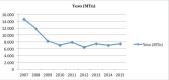 En el gráfico 1, que se muestra a continuación, se aprecia el descenso de dicha producción a lo largo del periodo 2007-2015, en gran medida atribuible al descenso y la crisis de la construcción.