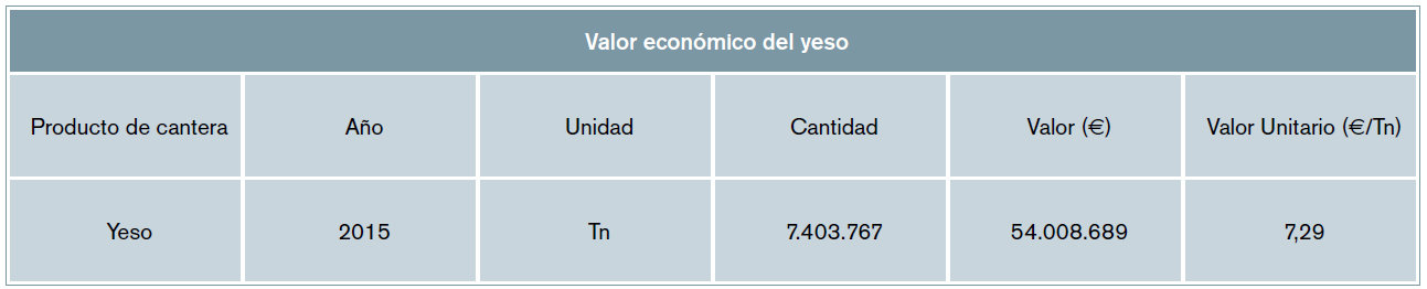 El valor monetario consolidado para el año 2015 de este material, según la base de datos del Ministerio de Industria, Energía y Minas [9], se expone a continuación en la tabla 2.