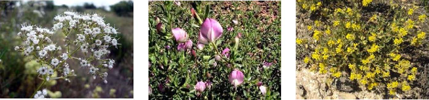 Las zonas donde se ubica este mineral en España, según Vincenzina La Spina, (2016) [6] [7] están caracterizadas por una vegetación específica que recibe el nombre de vegetación gipsícola (Gypsophiletalia), cuyo presencia es un indicador para poder detectar la presencia de yeso en una determinada zona. Según dicha publicación, “la vegetación gipsícola de la península queda incluida dentro de las estepas continentales halólicas y gipsícolas. Este tipo de hábitat caracteriza las zonas de España con suelos ricos en yesos, y se localizan fundamentalmente en la mi-tad oriental, sobre todo en el Valle del Ebro, Meseta sur (La Mancha, y en los territorios cálidos de Levante, sureste peninsular y Andalucía oriental. El suelo contiene sulfatos, bien yesos más o menos puros o bien margas yesíferas y otros sustratos mixtos, por lo que la vegetación típica se compone de matorrales y tomillares dominados por una gran cantidad de especies leñosas, de portes medios o bajos, casi siempre endémicas de determinadas regiones peninsulares o de la Península en su conjunto. Entre las especies más extendidas están Gypsophila struthium, Ononis tridentata, Helianthemum squamatum, Lepidium subulatum, Jurinea pinnata, Launaea pumila, L. resedifolia o Herniaria fruticosa. Entre los endemismos fundamentalmente manchegos cabe mencionar Teucrium pumilum y Centaurea hyssopifolia. En el valle del Ebro, gypsophila struthium se diferencia en una subespecie propia (subsp. hispánica). Pero es en el sureste ibérico semiárido donde estas formaciones alcanzan mayor diversidad y riqueza endémica, con especies como Thymus membranaceus, T. moroderi, Teucrium libanitis, T. balthazari, Santolina viscosa, Helichrysum decumbens o Teucrium turredanum, T. lepicephalum y Helianthemum alypoides”. En la figura 3, que se expone a continuación, se muestran las distintas especies de vegetaciones que nos podemos encontrar en las zonas yesíferas del país.