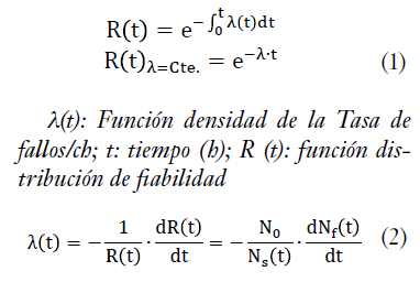 l(t): tasa de fallos instantánea; N0: población inicial; Ns(t):unidades sin fallo en el instante t; Nf (t): fallos en t.
