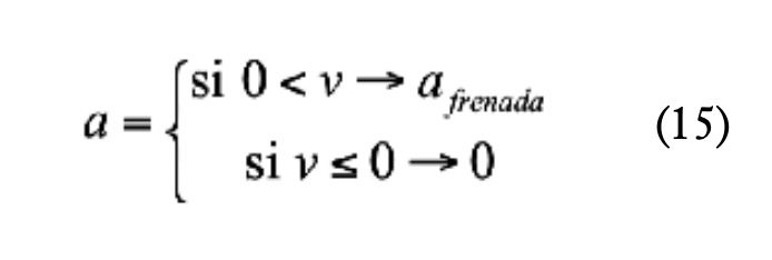 Se considerará que el límite de la operación de frenado es la detención completa de la motocicleta con la expresión (15).