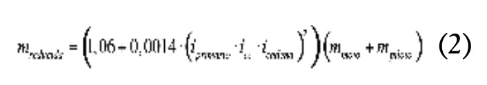 La masa reducida se calcula igualando energías cinéticas del sistema original (motocicleta con piloto) y el sistema reducido, que es una masa puntual equivalente situada en la posición del CDG del sistema original. Desarrollando esa igualdad y teniendo en cuenta la inercia de las masas rotantes en la motocicleta, se puede llegar a la expresión (2).