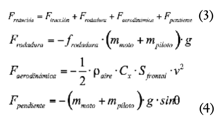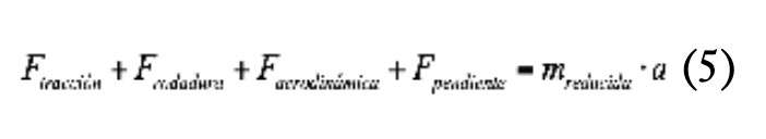 Para calcular la fuerza reducida, se tendrán en cuenta todas las resistencias al avance y la fuerza de tracción generada en la rueda trasera, llegando a la expresión (3). Donde:
