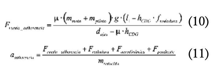 En paralelo, se puede calcular la máxima fuerza de tracción que se conseguiría llevando al límite la adherencia del neumático trasero (Luque, 2004) con la expresión (10) y la máxima aceleración que permitiría la adherencia con la expresión (11).
