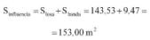 por lo que a la superficie en planta de losa de cimentación 143,53 m2 hay que añadir el área de una banda adicional de influencia de: