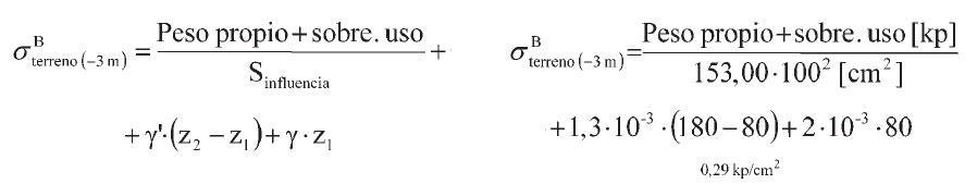 por lo tanto, a la cota de –3,00 m la superficie de influencia total es (figura 12):