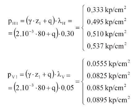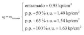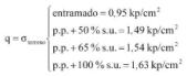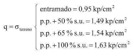 Al igual que en el caso anterior, como carga vertical q se adoptan los siguientes valores representativos de la tensión sobre el terreno bajo la losa de cimentación (cota de –1,2 m) del bloque n.o 9: