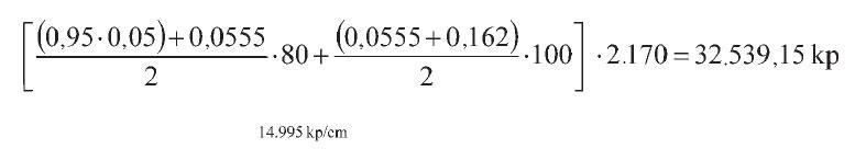 que equivale a una carga –colineal con la longitud de influencia del muro– uniformemente repartida de 1.499,5 kp/m.