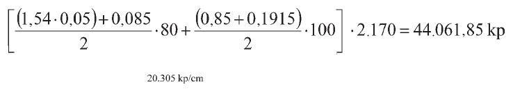 que equivale a una carga –colineal con la longitud de influencia del muro– uniformemente repartida de 2.030,5 kp/m.